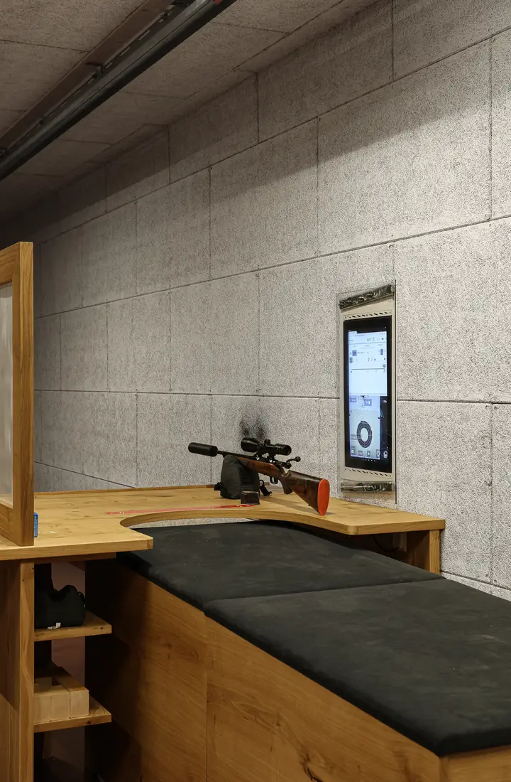 Auf unseren drei 100-Meter-Bahnen haben Sie die Möglichkeit, im Sitzen, stehend angestrichen oder in liegender Position zu schießen. Die Scheibenträger bewegen sich auf Schienensystemen, und die Papierziele lassen sich im Anschluss präzise auswerten. Zusätzlich erfassen Kameras die Trefferbilder aus 100 Metern Entfernung, sodass Sie Ihre Schüsse jederzeit einsehen können, ohne die Scheiben zurückholen zu müssen.